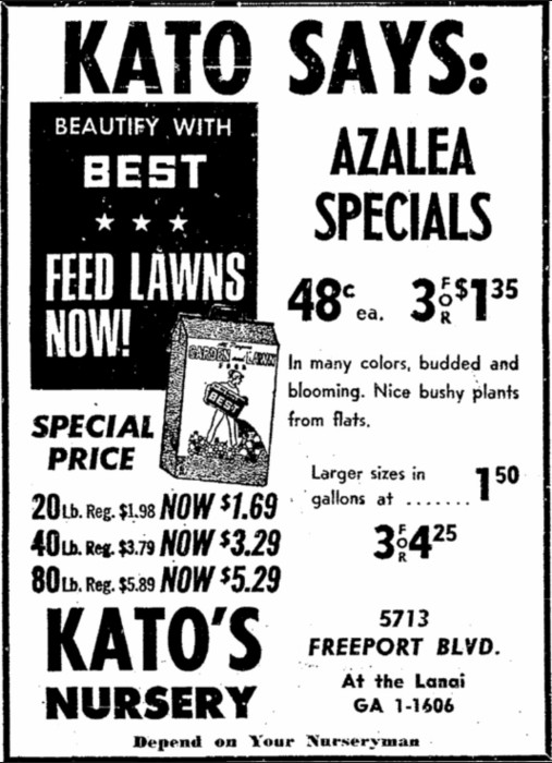 January 26, 1952 from the Sacramento Bee. Kato's used to be located in the main Blomberg Building Center before moving into their own building in 1957.