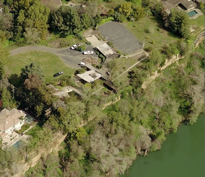 Lost to the bulldozer. Check out the amazing angles in plan, which imagines a bird in flight, and this house's proximity to the American River. Just caught these Bing Satellite maps before they had been updated to reflect the Palatial McMansion that is now on the site.