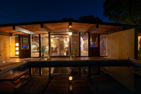 Wilma was from Arkansas and a big fan of FLW. She wanted a brick house but Carter said there “was no brick available”, and said they’d have to use concrete block. Wilma says block was cold in the winter because there was no insulation. Sparks added Mahogany sheets in the inside to help with insulation and sound. W asked for a “wide hall”, nothing narrow. She disliked small, dark corridors. She called it the “reception hall”. To the right as you enter, dining & living. To the left, bedrooms, laundry and baths.