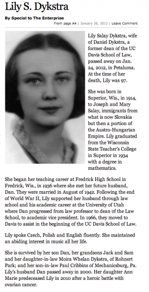 A memorial service will be May 5 at UC Davis School of Law." ( Associated Press, Published: Monday, April 10 2000 12:00 a.m. MDT)