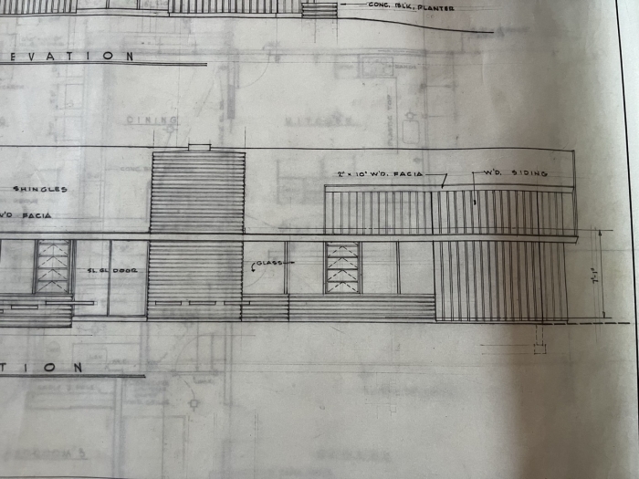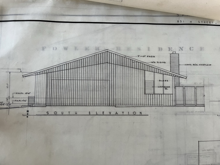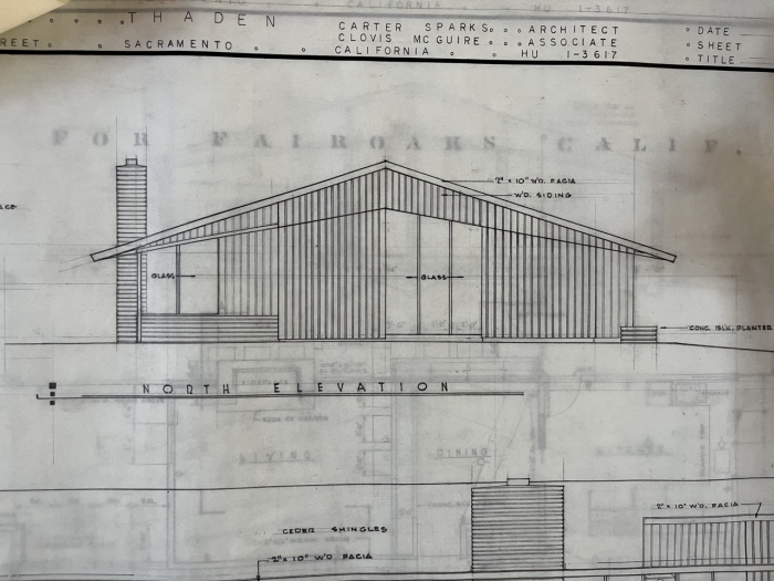 Designed May 1955 / Carter Sparks & Donald Thaden w/ Clovis McGuire, Associate Architect (via Plans) for Dennis G Fowler. Permits pulled first on Sept 1, 1955, then again on Nov 8, 1956 (via San Juan Record)