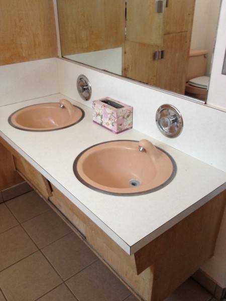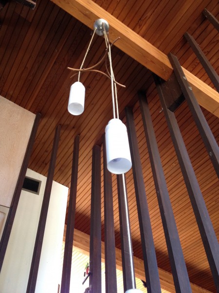 Kitchen cabinets are Teak, and adjacent Office cabinetry is Jerusalem cedar I believe. Original kitchen stove hood was a clear lucite tube. Mrs Pinnegar used to have an outdoor clothesline by the fireplace where she would make the short walk from the laundry room to the back deck to hang the clothes.